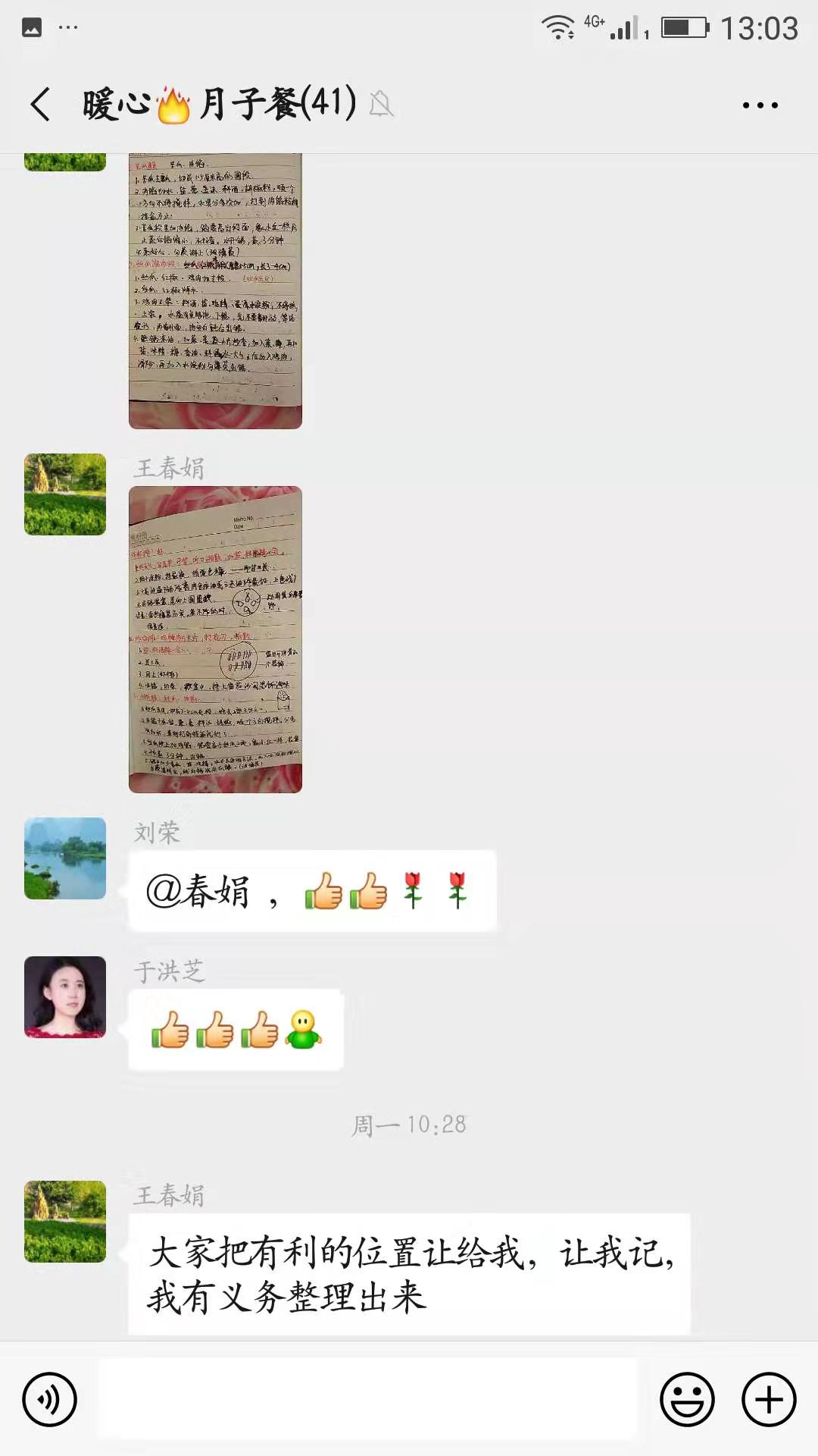 大姐們一起在群里發(fā)表自己的成果